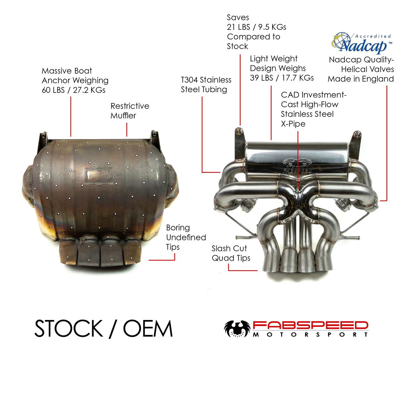• Utilizes factory exhaust outlet tip; Fabspeed's tips sit right inside of the factory outlet for an aggressive look