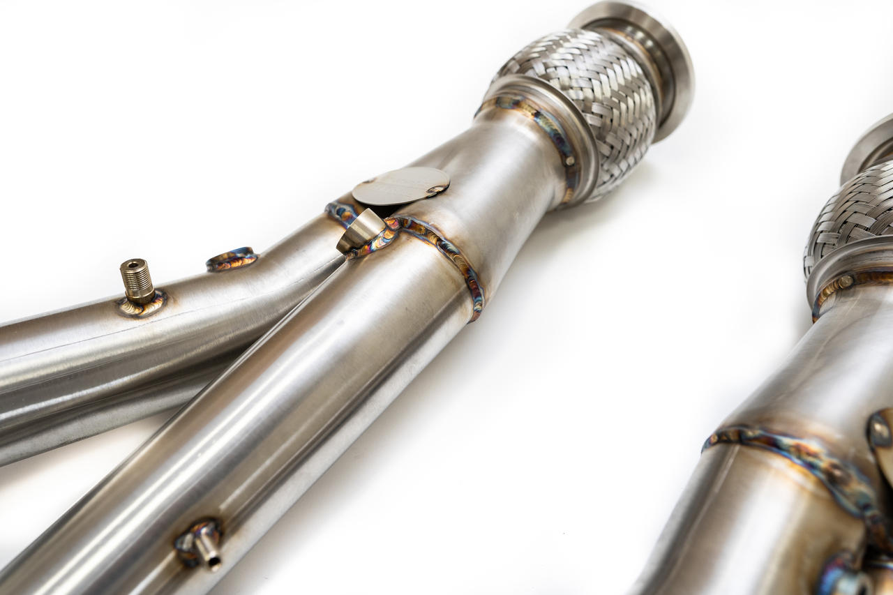 The Fabspeed Lamborghini SVJ Cat Bypass Pipes replace the factory super restrictive 600 CPSI catalytic converters resulting in improved exhaust flow and giving the car a much better exhaust note. These Cat Bypass pipes are recommended along with a ECU Tune to maximize efficiency and have the car operate correctly with reduced back pressure.