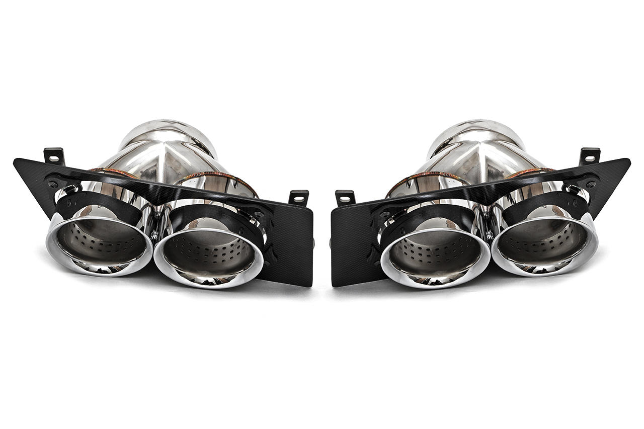 Deluxe Bolt-on replacement Quad Style outlet tips for factory exhaust; Available in your choice of finish to complement your vehicles look and style. Featuring only the highest quality components like the investment cast Y-Pipe merge collector to develop this unique one of a kind upgrade to give your Gallardo a more aggressive and updated LP style look.