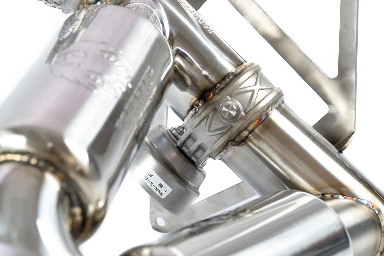 Our Huracan Performante Valvetronic Supersport X-Pipe Exhaust System provides the best of both worlds, making it the perfect system for those who want to enjoy their vehicle both in the streets AND on the track. Fabspeed engineers set out to unleash the full unmuffled roar of the high output 5.2L V10 while being able to retain civility around town when desired. Our system retains the use of the factory exhaust valve controls; no valve controller installation is necessary. Fabspeed Motorsport also use Helical UK OEM Tier 1 exhaust valves. Helical valves do not fail, rattle or break.
