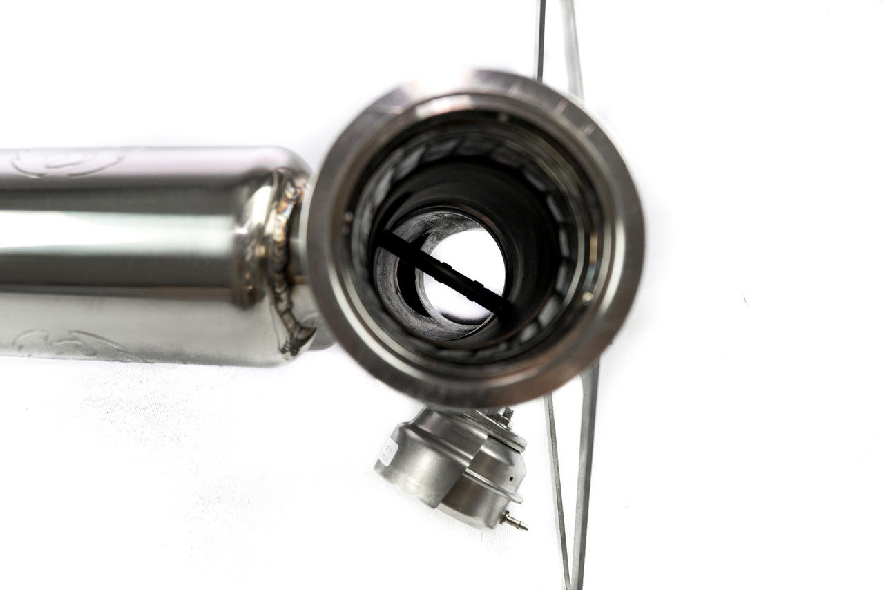 VALVES CLOSED: Exhaust flow is channeled through Fabspeed's signature 63.5mm 2.5" Quad-Resonated X-pipe. We engineered it specifically to smooth out exhaust pulses for a sophisticated and exotic ripping exhaust note while being as free flowing as possible with a noticeable improvement in performance over OEM. The tone is perfect for cruising around town or long highway drives.