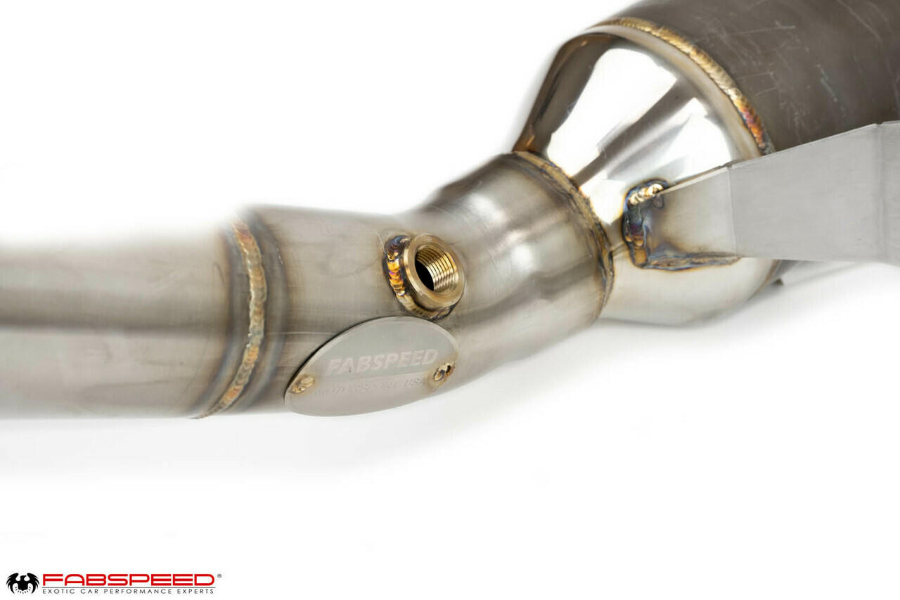 When we looked at the factory ceramic core cats we immediately found an opportunity for improvement. The OEM Cats restrict exhaust CFM flow, limit sound and worst of all, rob performance. Replacing the OEM cats for a set of Fabspeed Sport Cats will net you improved performance with absolutely zero fear of a check engine light.