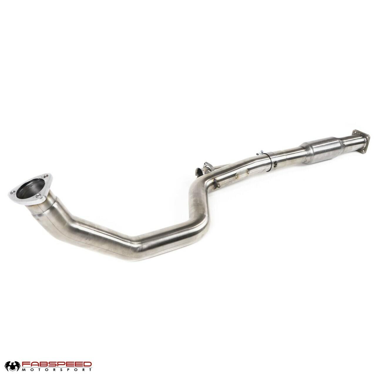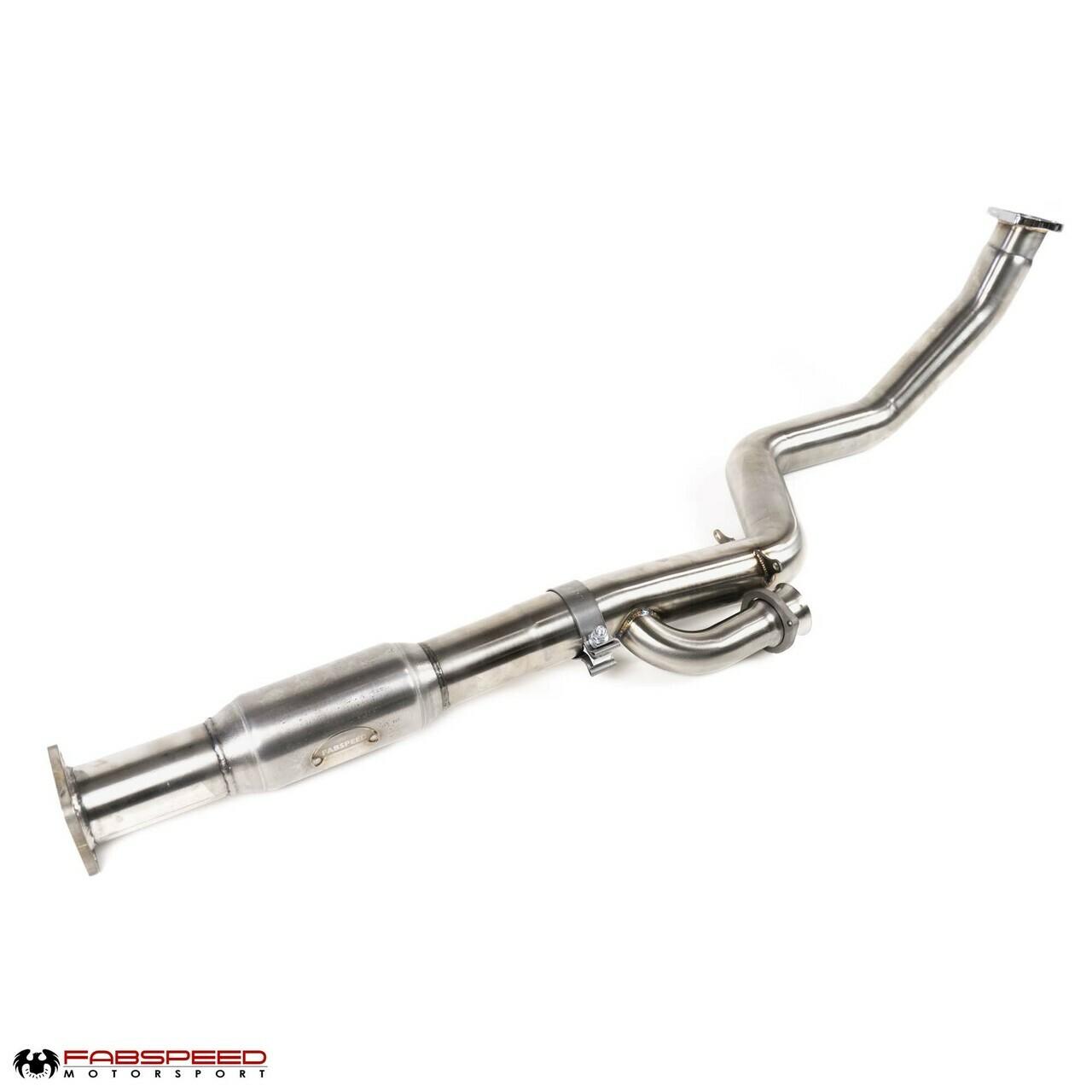 Fabspeed's Sport Catalytic Converter utilizes a high-performance 200 cell cat for maximum performance and sound. The Sport Cat alone requires the Fabspeed Downpipe for installation.