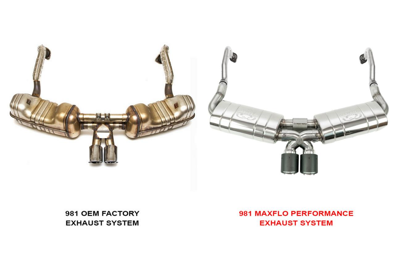 Perfect for the street or light track use, the Maxflo Performance Exhaust System has been designed to be the optimal balance of sound, power, and drivability. Extensive Research and Development, R&D, has been done on the dyno, street and track to make this the best all around cat-back exhaust system for your 981 Boxster / Cayman/ GT4. Available with either satin black, carbon fiber, or polished tips. This system will set your machine apart from the factory-equipped crowd. This is the Worlds Very Best catback exhaust in terms of design, fit, finisha nd construction. CAD Designed and Made in USA not imported from China like virtually all other brands.