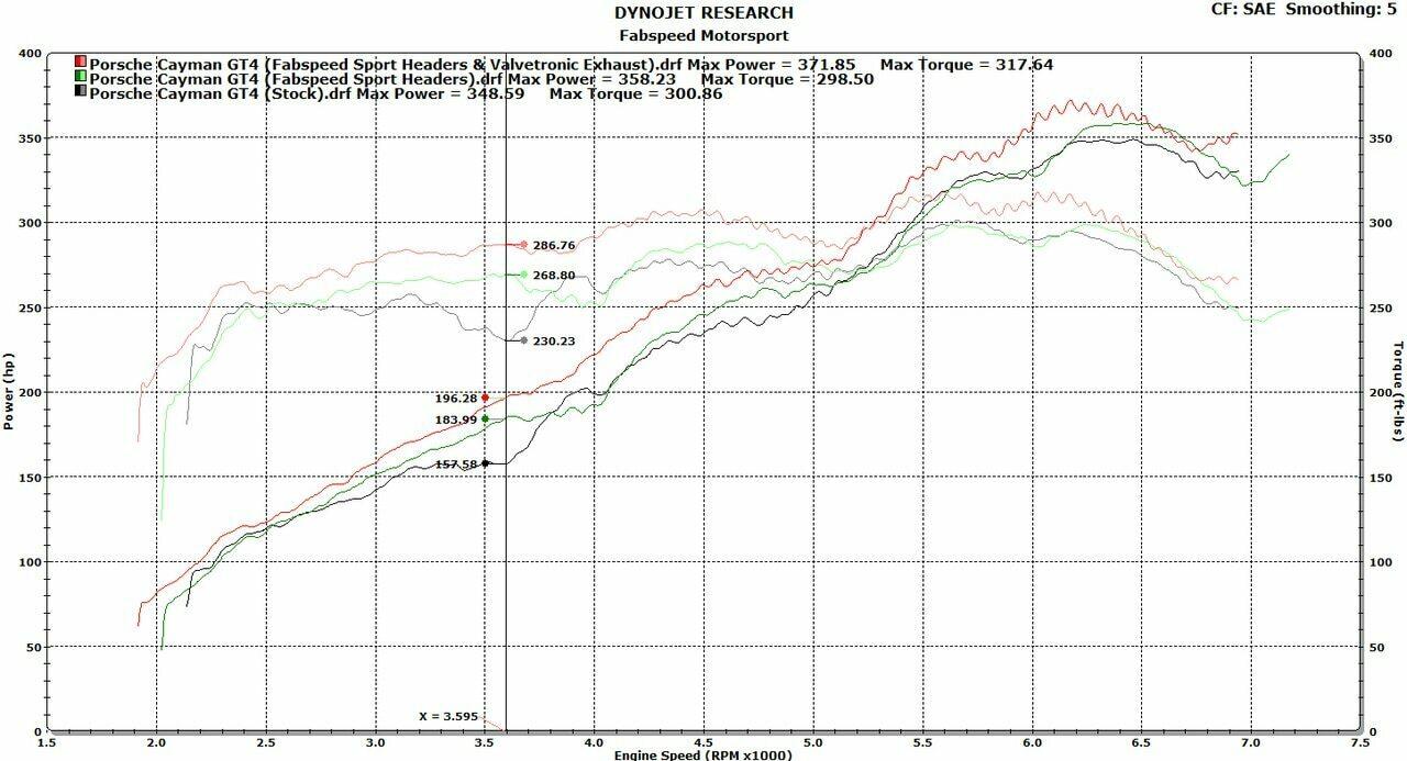 When combined with Fabspeed's Race Headers, our Valvetronic Exhaust System allows you to push 420HP out of your GT4! Even with Sport Headers coming in at 408 Horsepower, the gains in power are as impressive as the sound. The Fabspeed exhaust suite completely eliminates the torque dip in the 3500 RPM range and offers power gains all the way through redline. The increase in low end power will make a great difference in street drivability with the long gearing of the GT4. Fabspeed systems are 3D laser light scanned and CAD Designed and Dyno developed and street, racetrack and AUTOBAHN tested and validated.