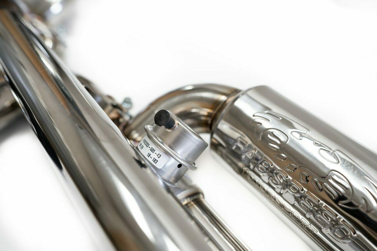 Fabspeed's Valvetronic Exhaust System is the ultimate cat-back performance exhaust for the ultimate street-drivable GT4 dual use street/track car. New anti-resonance technology makes for the Worlds Very Best enjoyable driving experience.