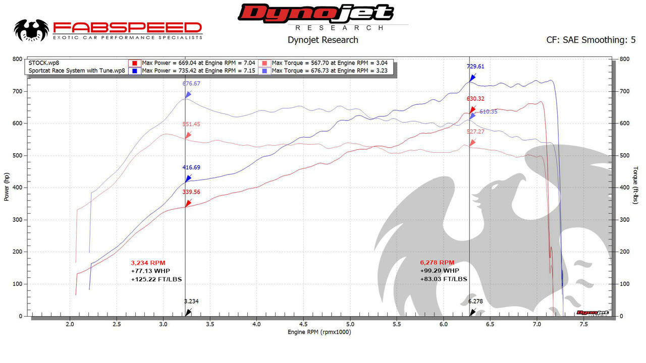 - Competition Sport Cat Race Pipes combined with our proprietary ECU Tune makes over 740HP to the wheels. 850HP to 888HP to the crankshaft on pump gasoline.