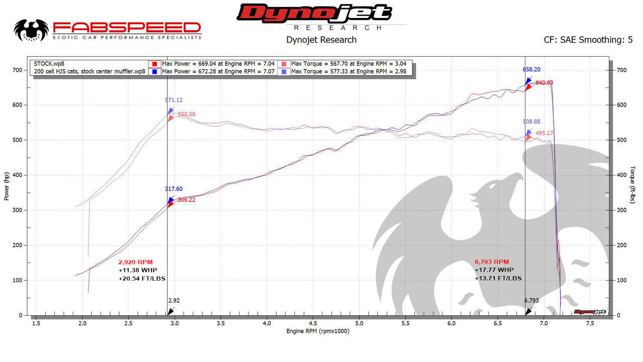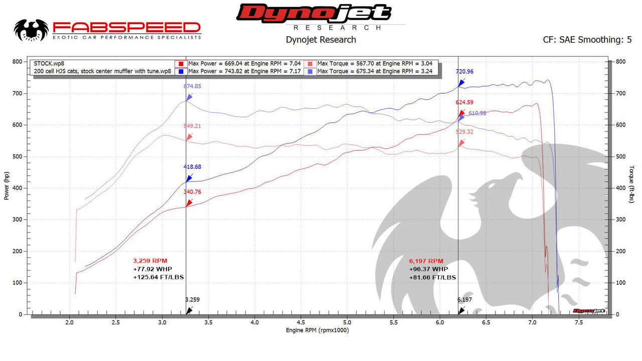 - HJS German imported 200 CPSI extra extra large Sport Catalytic Converters with ECU Tune adds an insane 75 WHP at 7200 RPM and 108 FT/LBS of torque at 3200 RPM