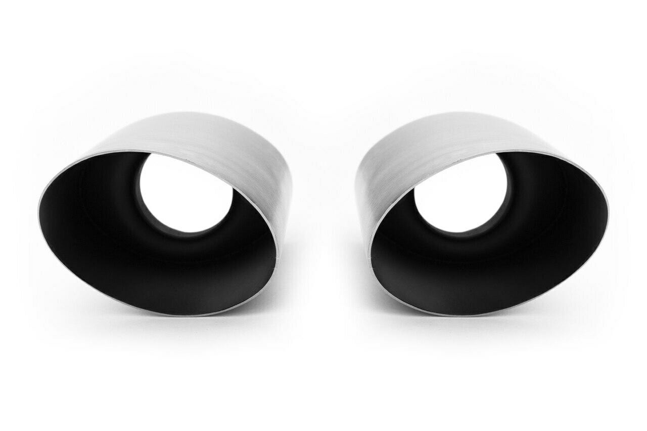 Fabspeed Motorsport USA was the Worlds Very 1st company to design, engineer and perfect Porsche 993 replacement exhaust tips and ALL performance exhaust systems. Fabspeed has the most experience and actually OWNED multiple 993 RS , 993 cabriolet and 993 Twin Turbo cars for development and air-cooled enjoyment. . It was requested of us to offer slash cut, single wall tips and we're happy to deliver. Choose from three different finishes to complete the look of your 993. Polished, sanded finish or black ceramic finish.