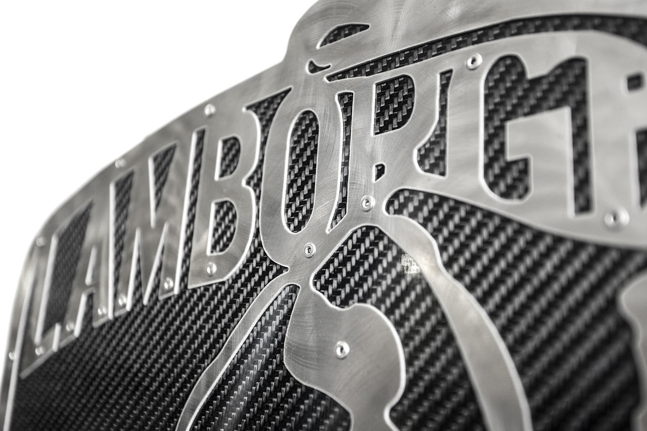 Showcase your Lamborghini pride with a 19"x 25" genuine carbon fiber and stainless steel wall sign!