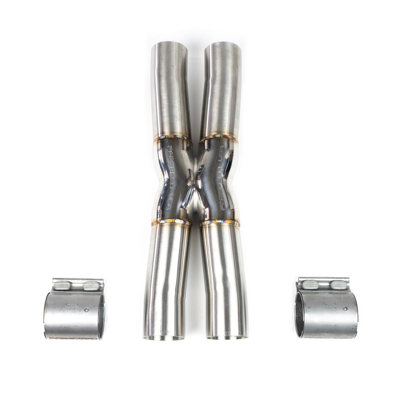 Our X-pipe will give your 812 a much smoother exhaust note as well as a higher-pitched F1 wail in the upper end of the RPM band when compared to the stock H-pipe.