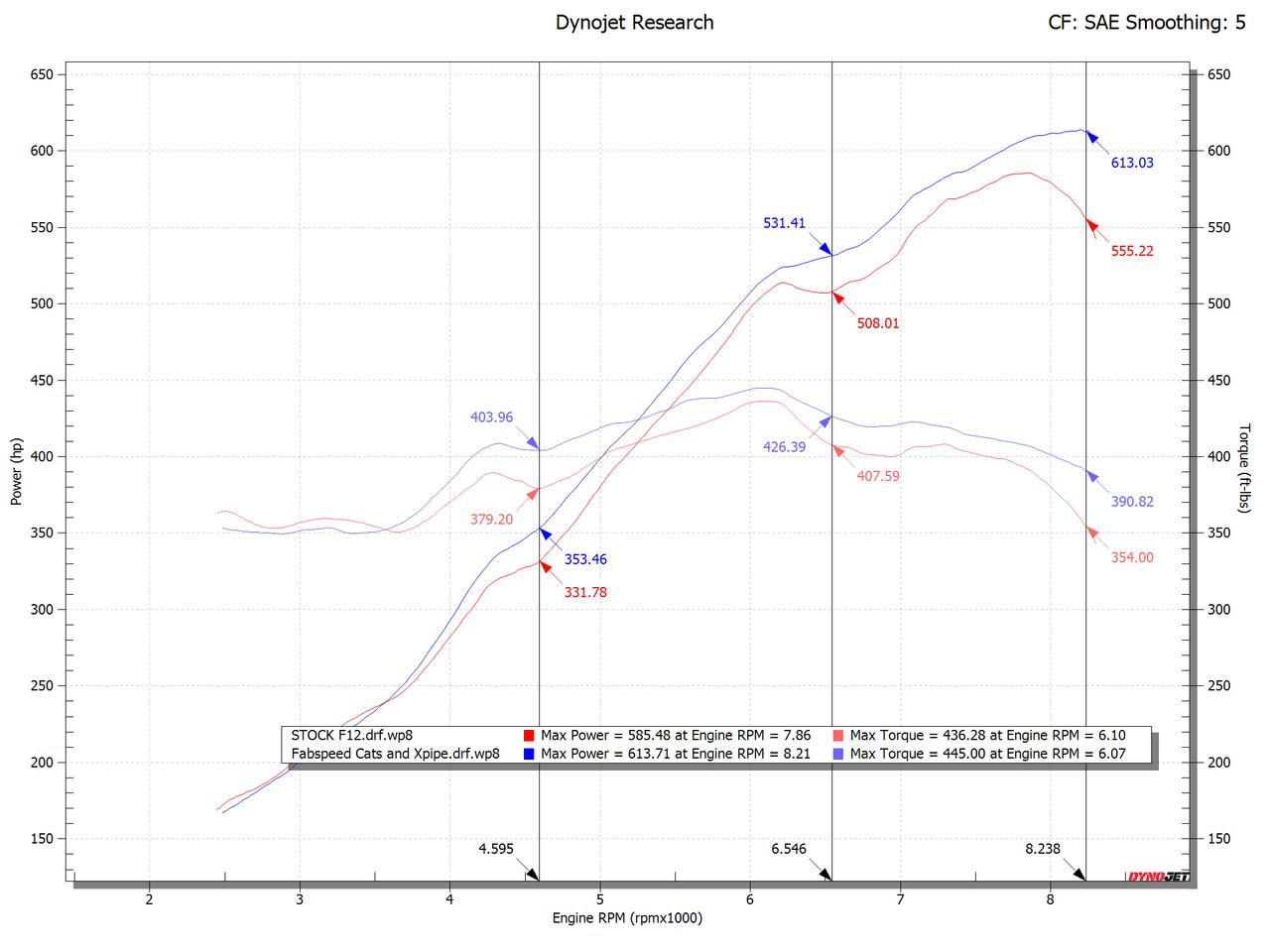 High-performance exhaust solution for the Ferrari F12 Berlinetta; fantastic daily-drivable sound and power from Fabspeed's Sport Catalytic Converters and Performance X-Pipe.