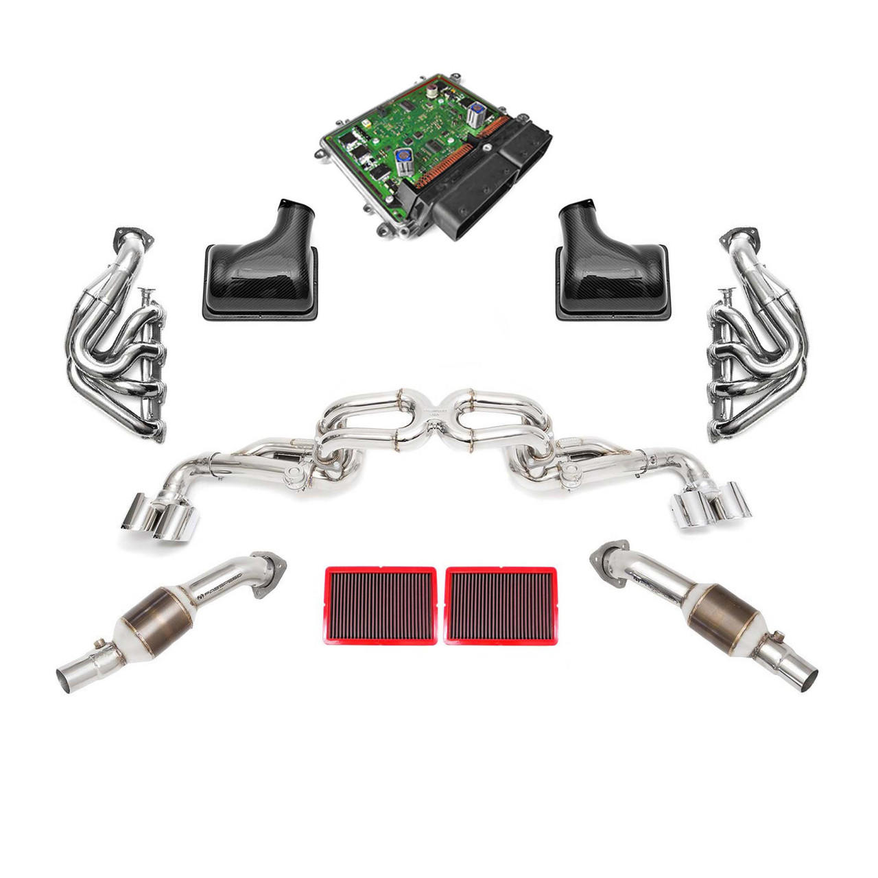 Total performance solution for the Ferrari F430 platform; includes high-performance exhaust, headers, intake, filters, and ECU tune.