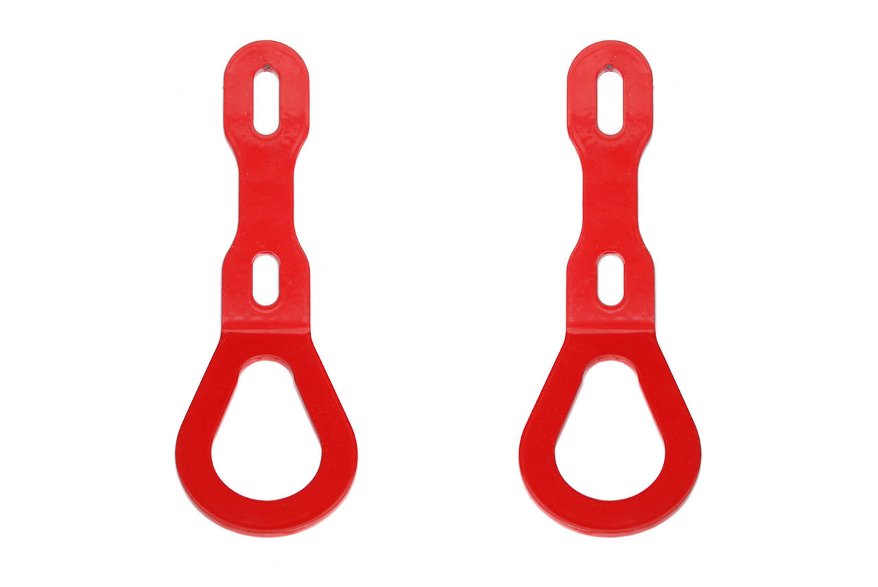 - Simple bolt-on installation- REMOVE 2 Hex nuts on REAR frame and slide on RED rear tow hooks and retighten hex nuts.